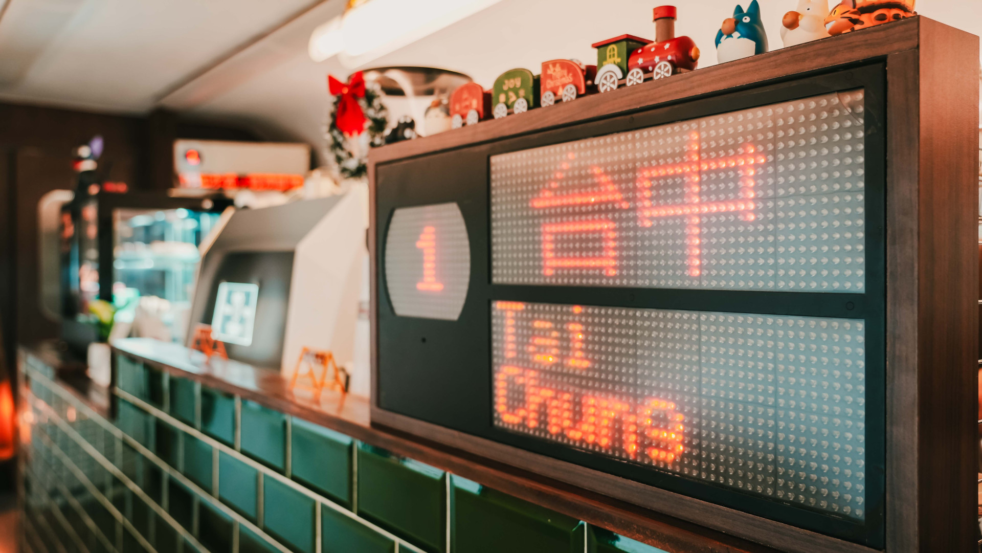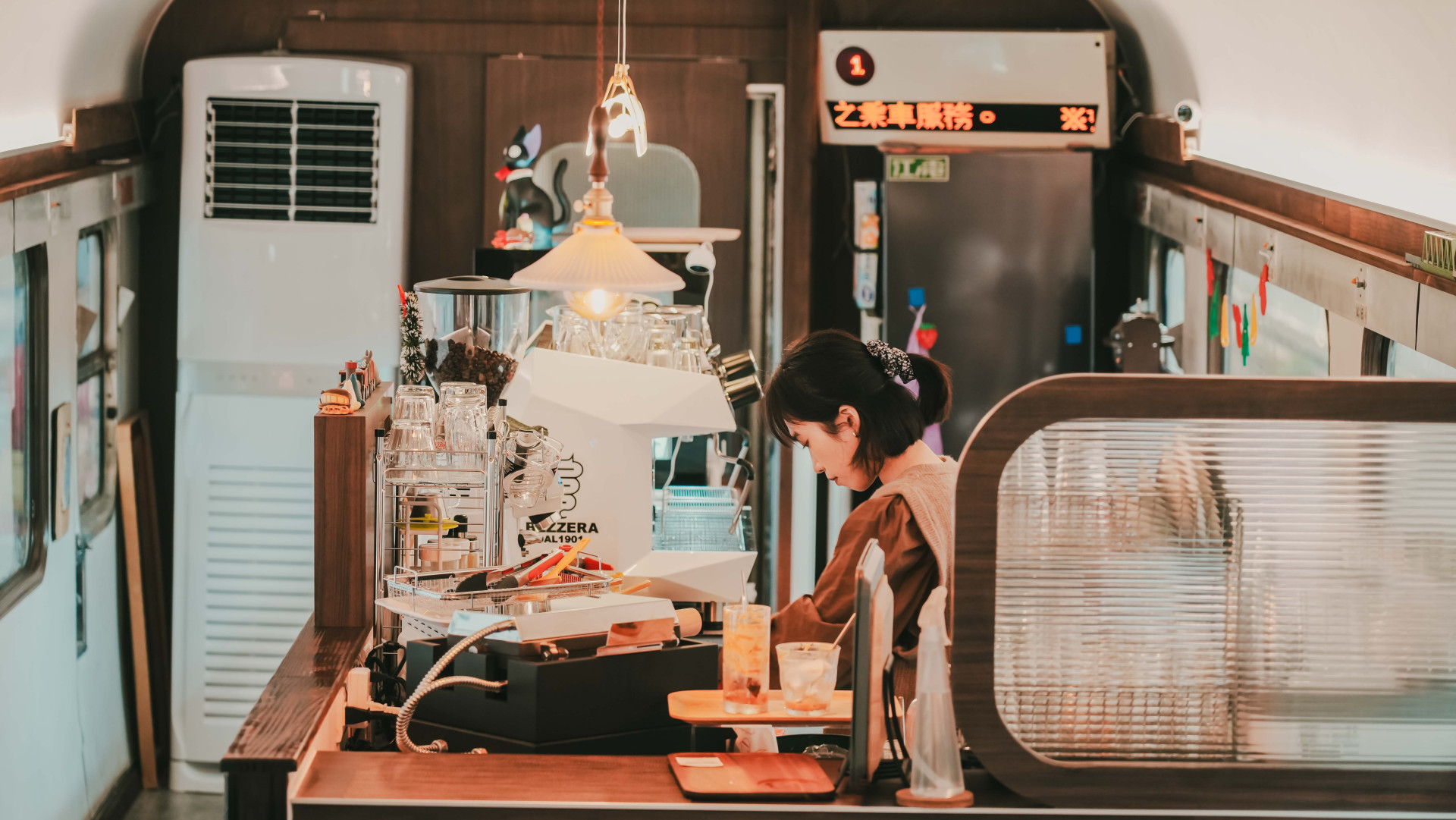 現場除了保留自強號火車上原本的跑馬燈、燈號牌之外