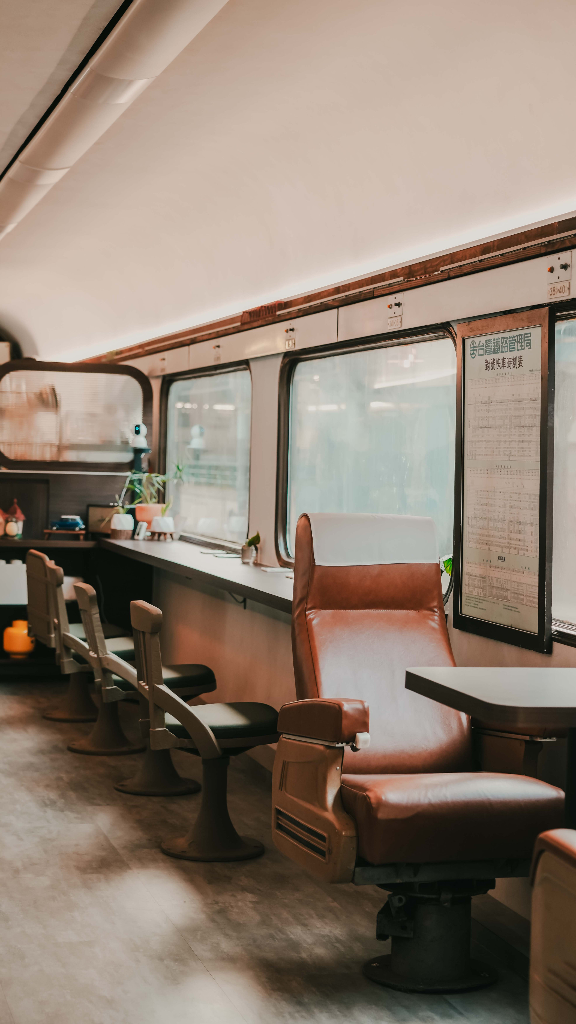 車廂內的椅子,是從各台退役列車上蒐集而來的真品火車座椅