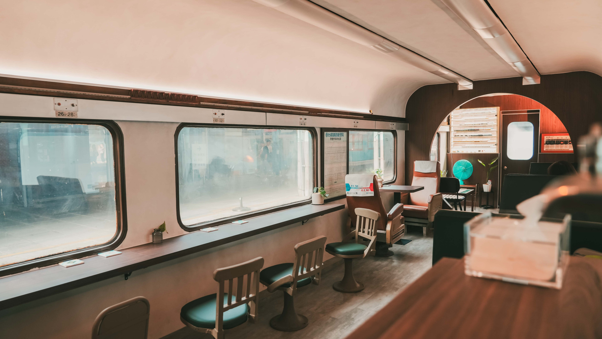 Mamonaku Cafe將車廂內那些見證歲月的痕跡,轉變成了復古氛圍的特色台中咖啡廳