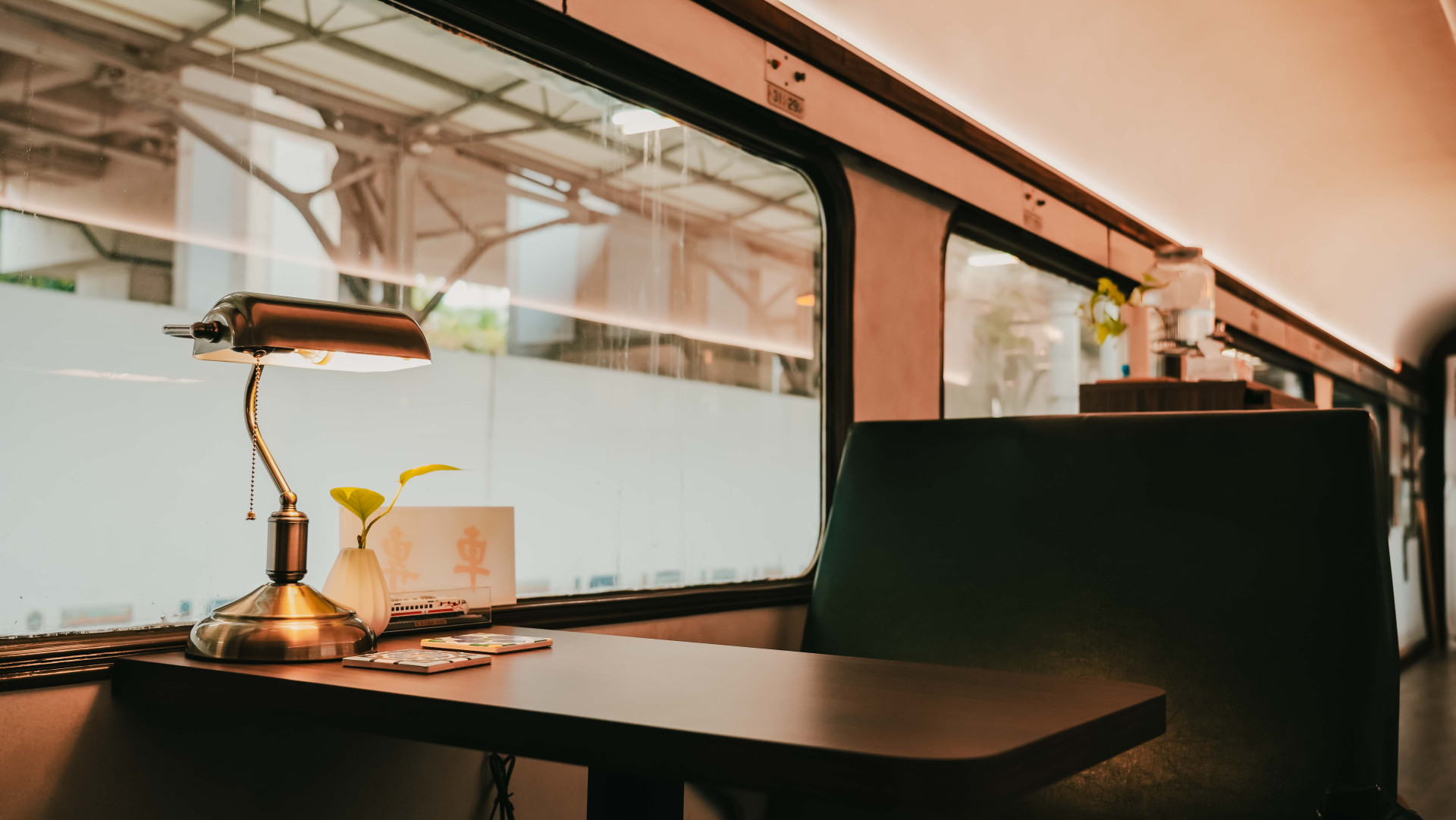 將最適合享用時光的咖啡廳,搬進停駐在臺中驛鐵道文化園區舊軌月台的自強號車廂裡