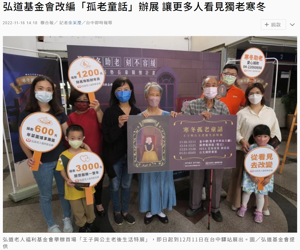 【聯合新聞網】弘道基金會改編「孤老童話」辦展
